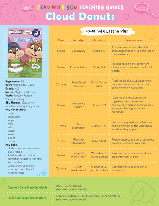 We offer extensive, high-quality lesson plans, discussion questions, and activity guides to accompany our books. Each guide turns a Read With You book into an unforgettable classroom experience. Our guides incorporate Common Core State Standards, WIDA Language Expectations, and specific disciplinary standards and are designed for use in STEAM, science, language arts, social studies, and ELL classrooms. The accompany printables and worksheets make lesson planning a breeze!
